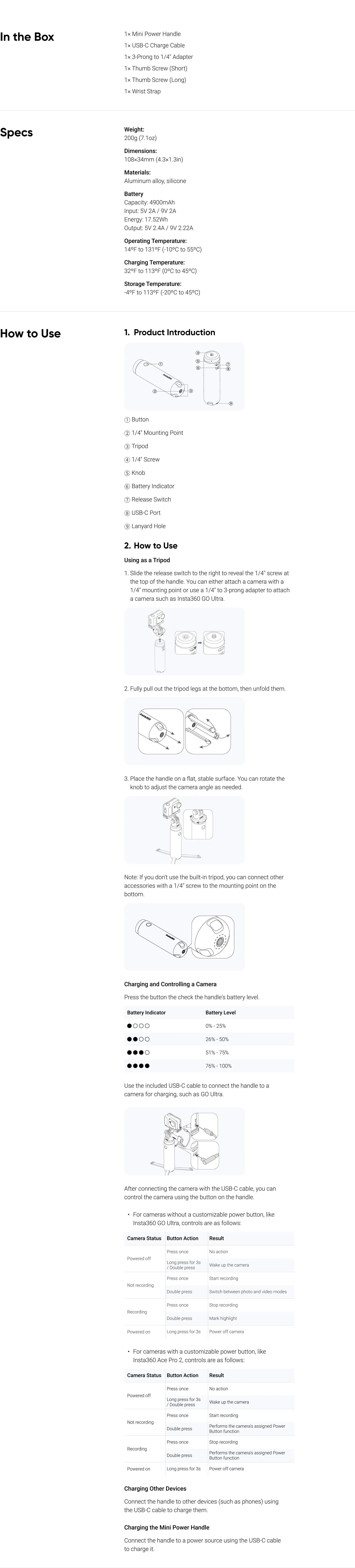 - Do not use the Mini Power Handle in the rain or around water to avoid damage from moisture entering the USB-C port.